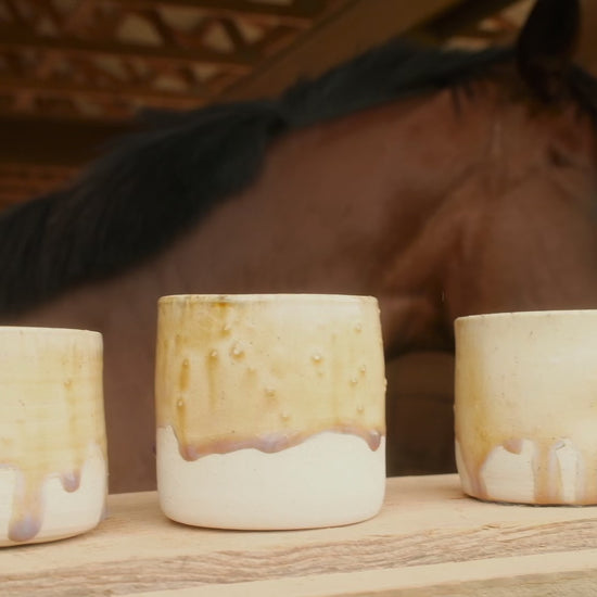 Each piece is handmade and hand-glazed in a small studio in the Sunshine State. No two pieces will be the same. Each piece is 100% unique and absolutely one-of-a-kind!